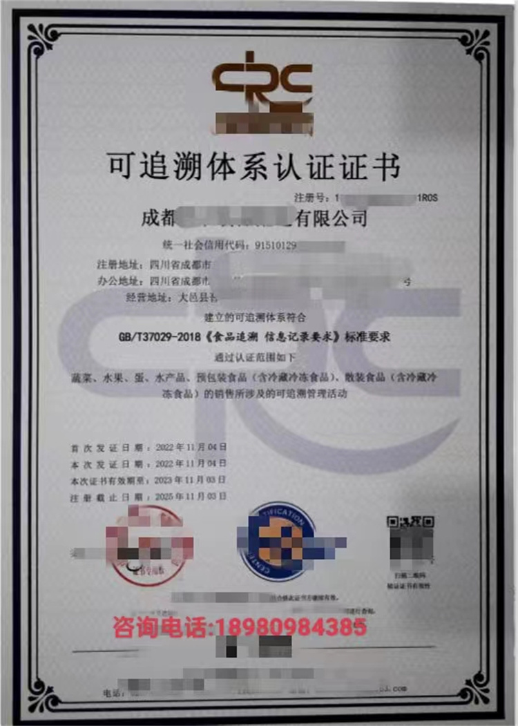 可追溯体系认证
