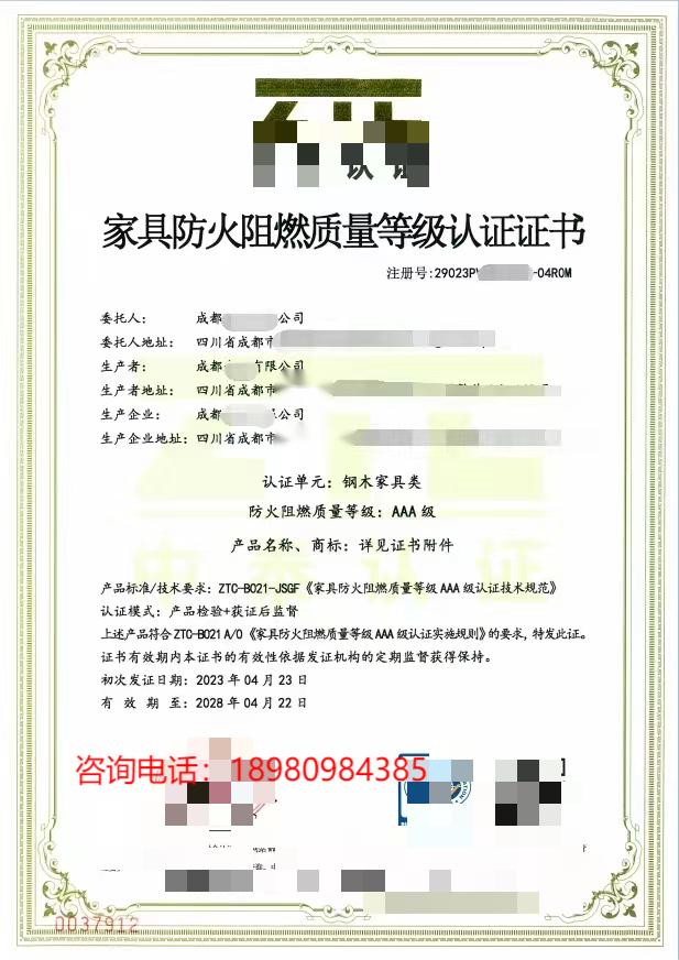 家具防火阻燃等级认证...